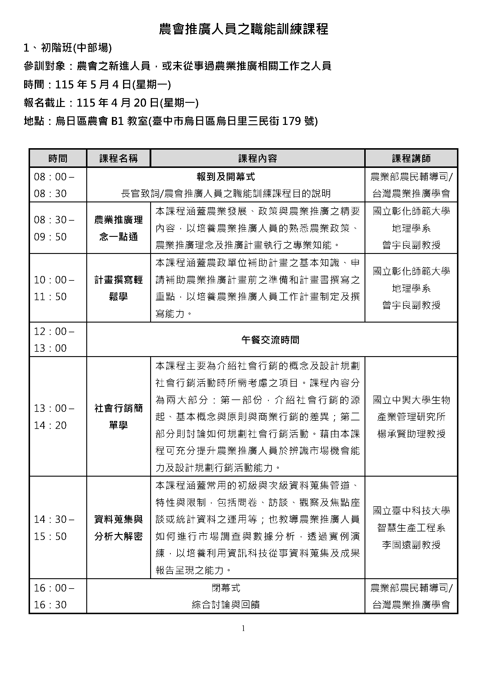 一、台灣農業推廣學會(以下簡稱本學會)為訓練課程之報名,為確保學員之共同利益,並遵循個人資料保護法及相關法令之規定、蒐集、處理及利用學員所提供之個人資料,包括EMAIL帳號、姓名、服務機關、通訊住址、電話等資料。